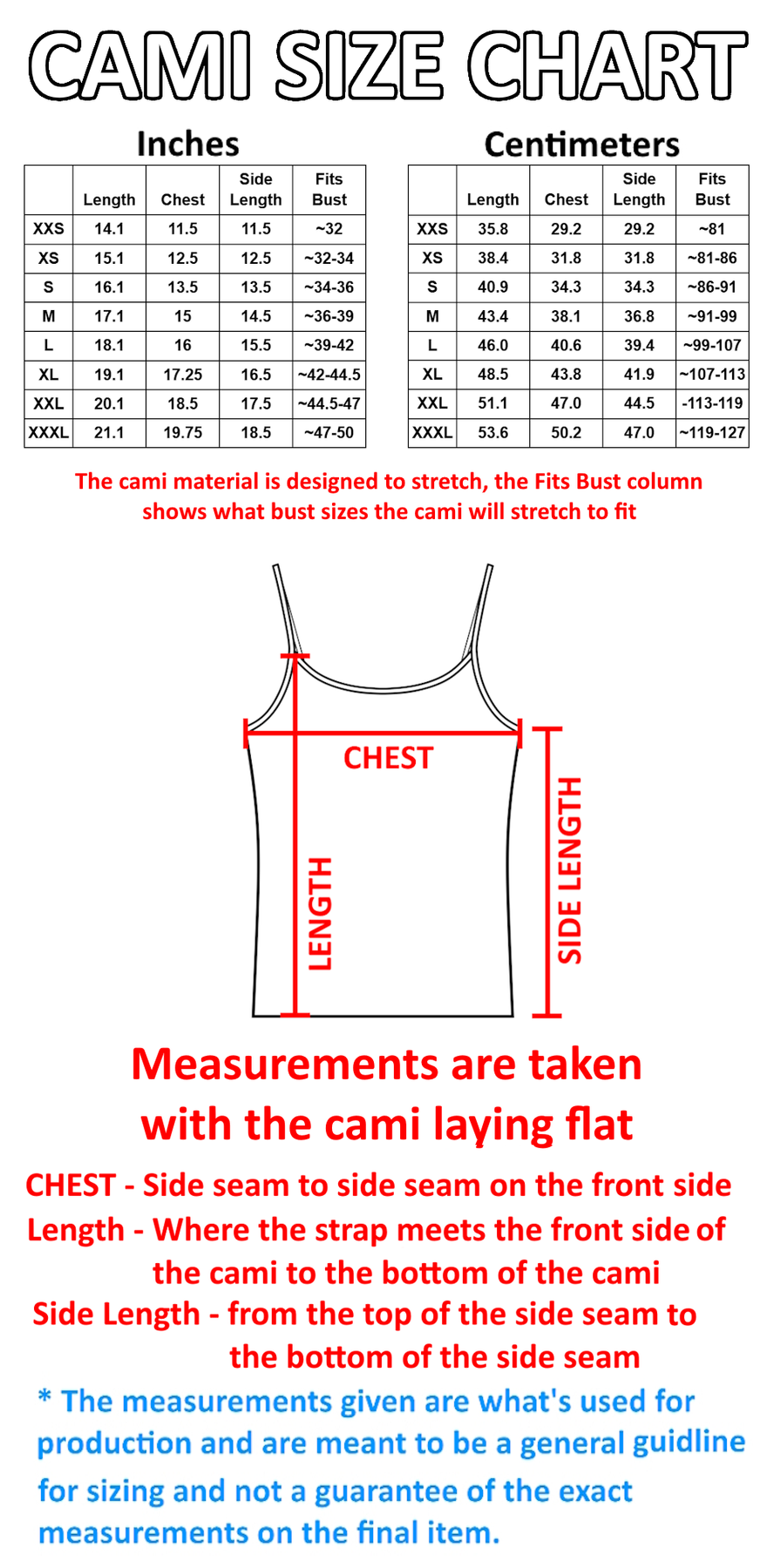 • Full length cami fit
